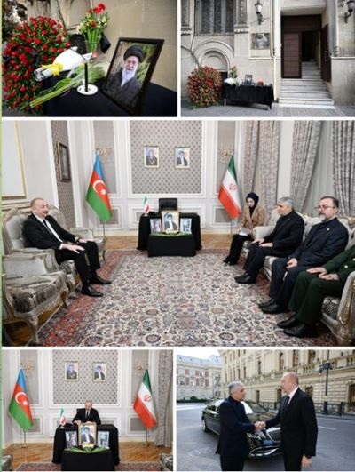 الهام علیف رئیس جمهور آذربایجان با حضور در سفارت جمهوری اسلامی ایران در باکو ضمن امضای دفتر یادبود شهادت رهبر معظم انقلاب، مراتب تسلیت و همدردی خود، مردم و دولت جمهوری آذربایجان را اعلام کرد.